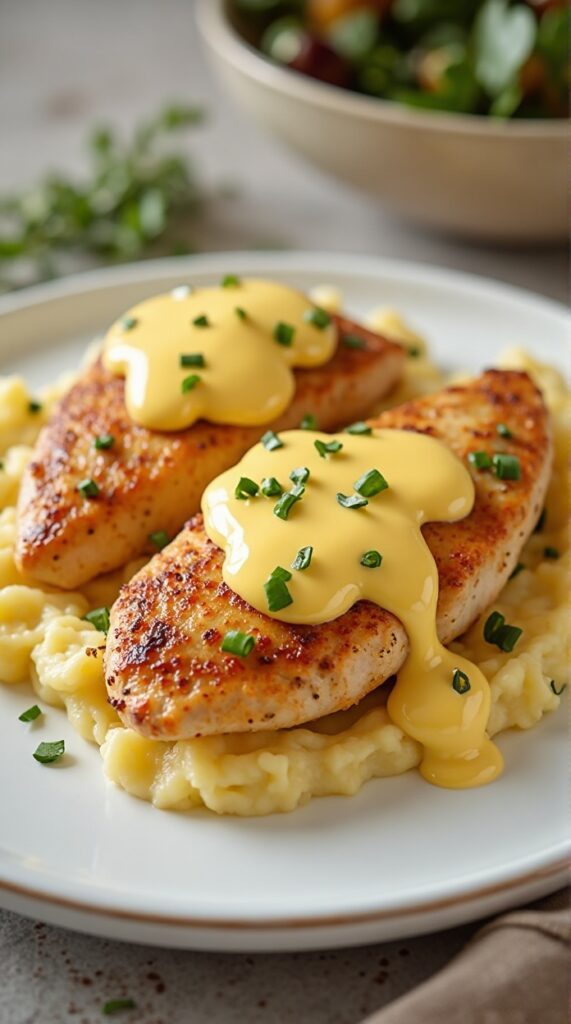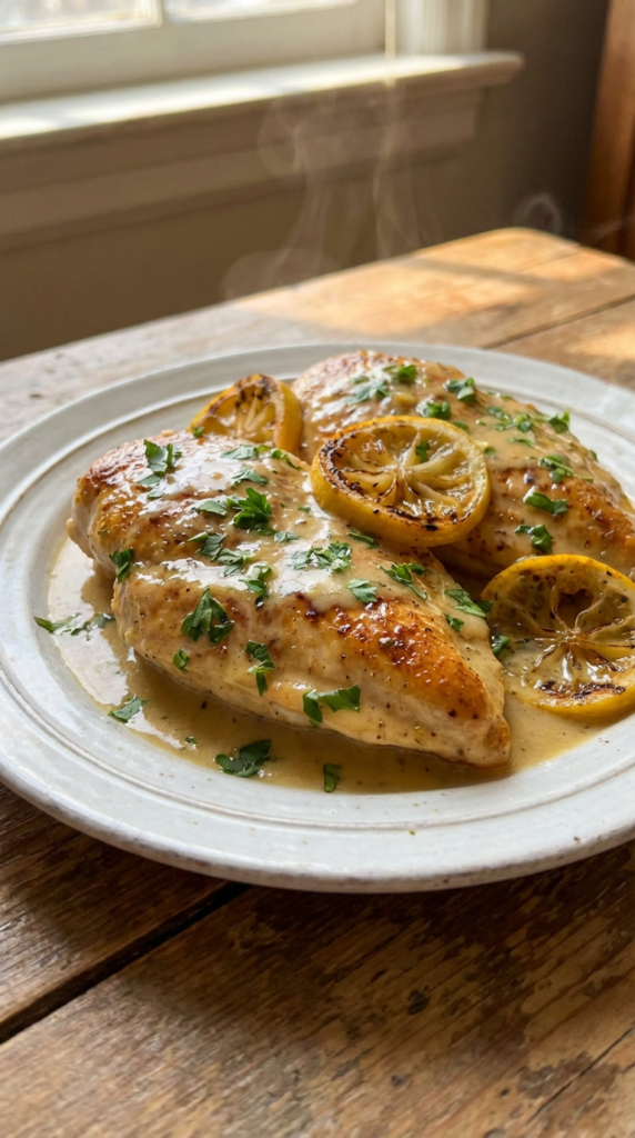 This dish delivers brightness and richness in the same bite. Juicy chicken breasts are pan-seared and finished in a silky sauce made with lemon juice, garlic, cream, and parmesan cheese. It pairs beautifully with rice, mashed potatoes, or pasta.