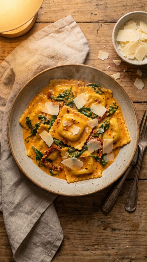 3. Creamy Sun-Dried Tomato and Spinach Ravioli