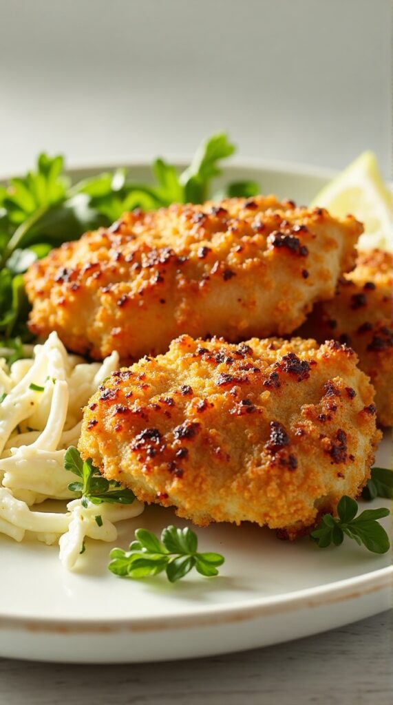 A crunchy coating with subtle sweetness makes this dish stand out from traditional breaded chicken recipes.