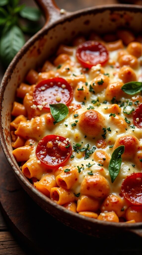 These mash-up meals combine pasta, cheese, sauce, and toppings in creative baked formats.