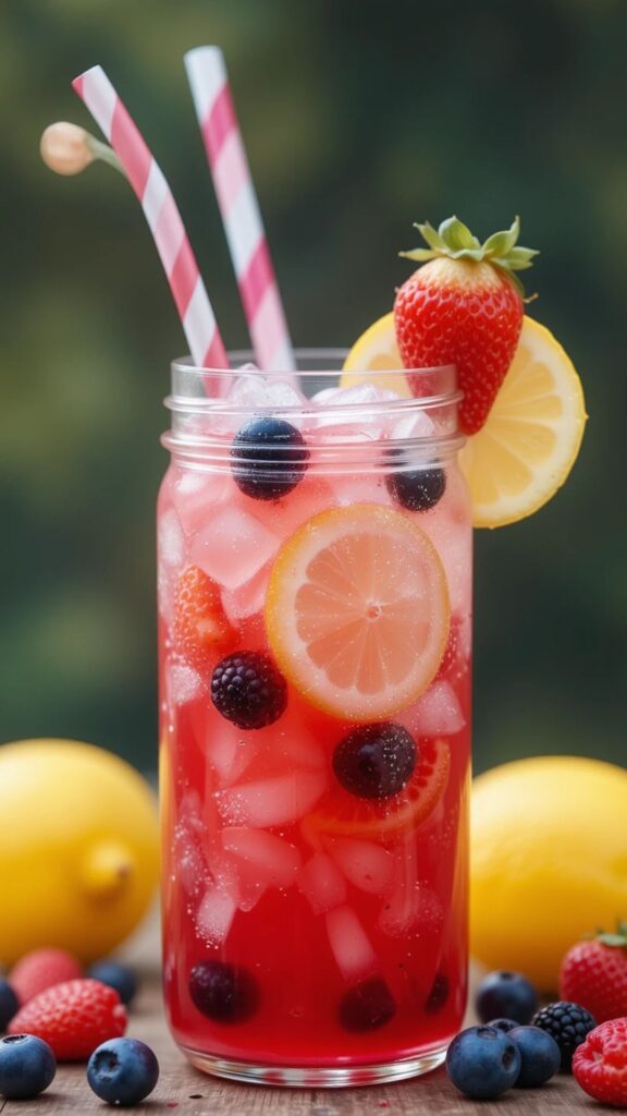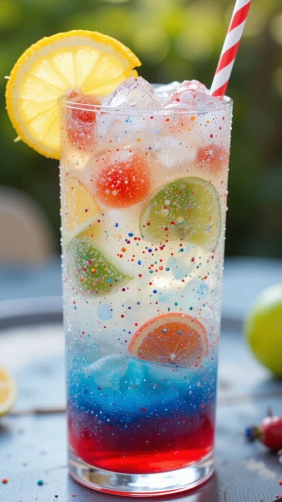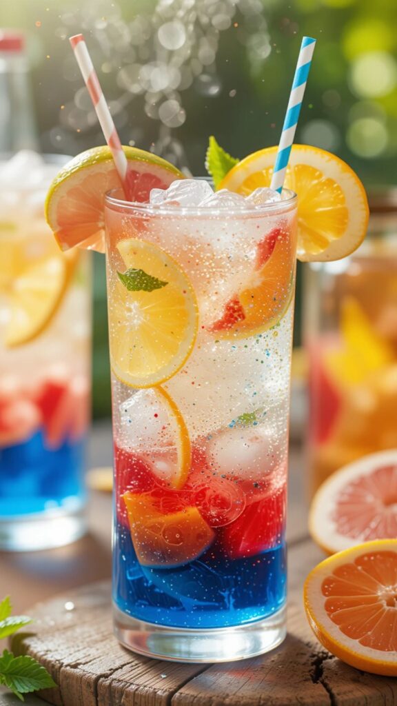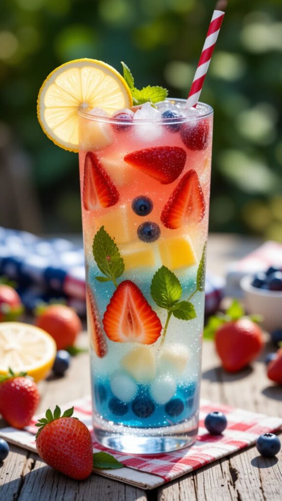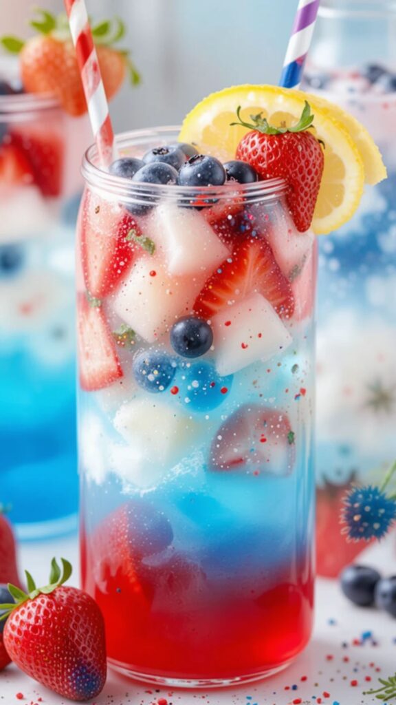 Whether you’re hosting a patriotic picnic, baby shower, or just lounging on your porch, this mocktail brings color, flavor, and fun to every glass. 🍓🍋🫐