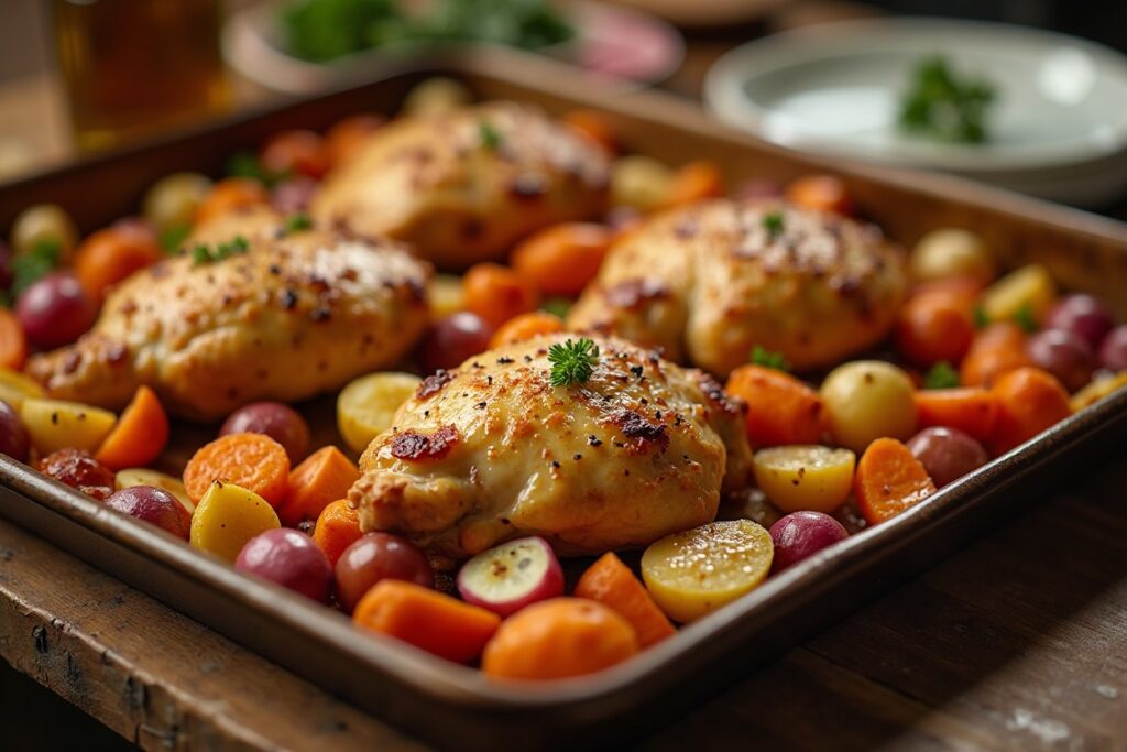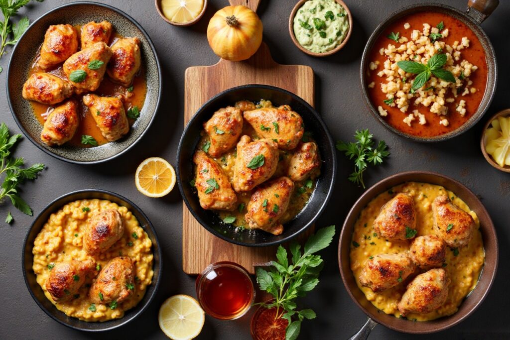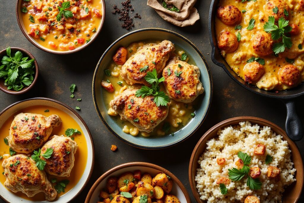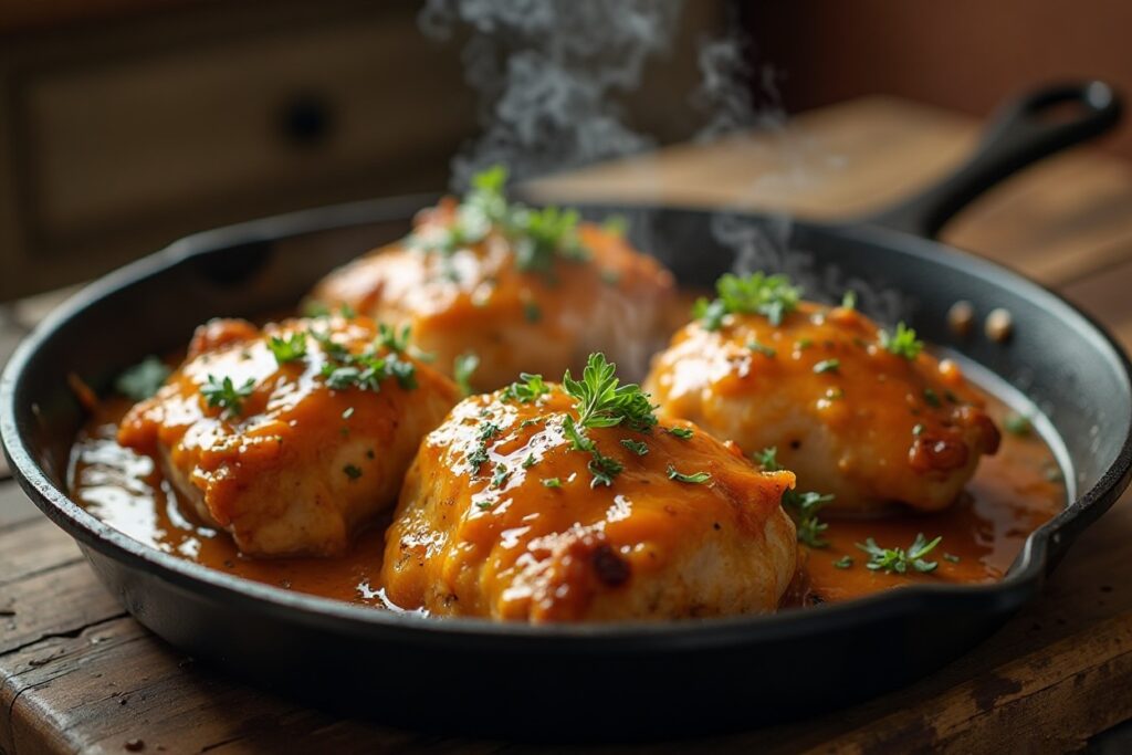 - 6–8 boneless, skin-on chicken thighs — juicy and perfect for soaking up sauce